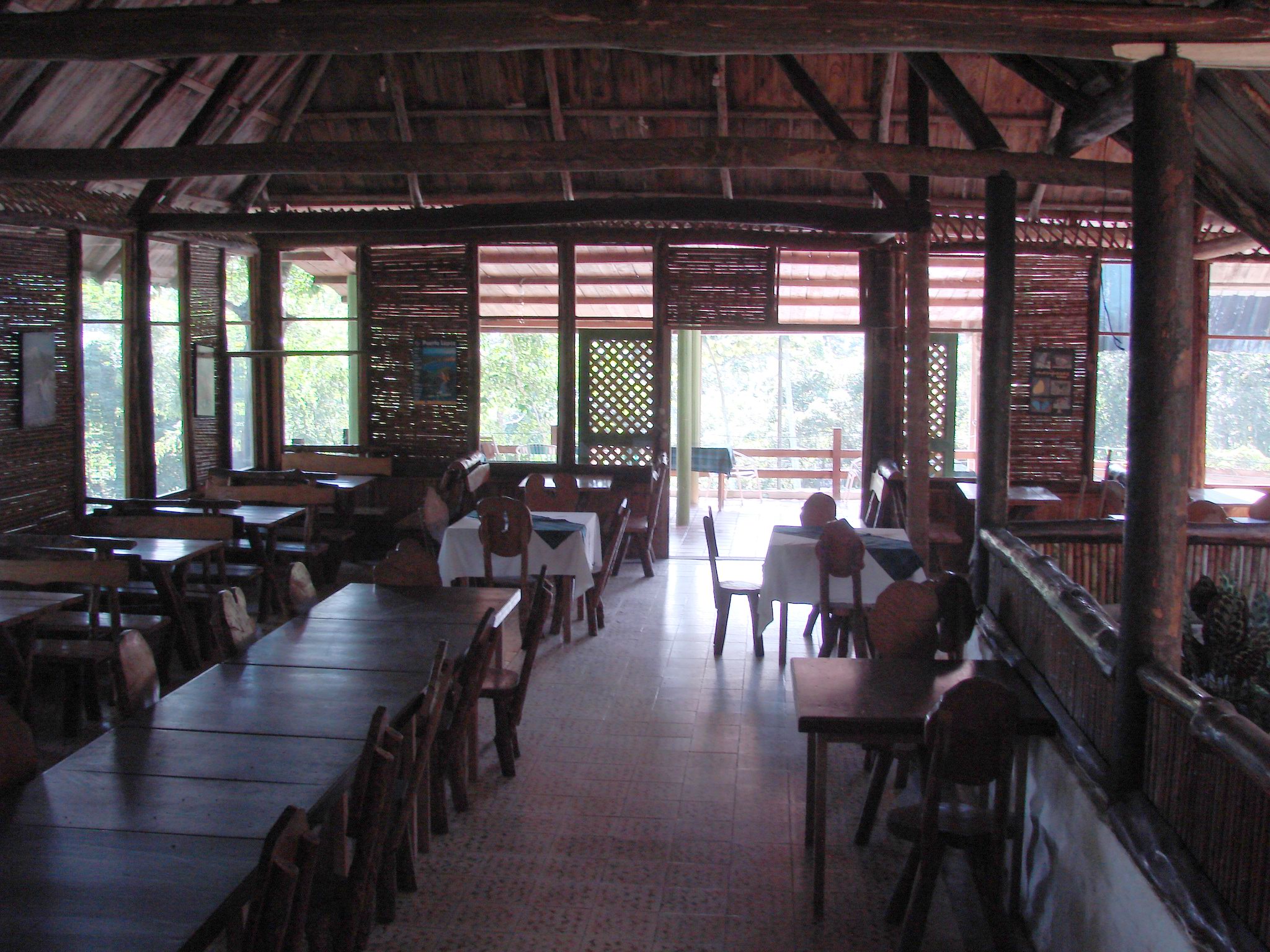 Ну да черт с ним. Перейдем к отелю. Отель довольно цивильный и оставляет весьма положительные впечатления, в отличие от многих других аналогичных мест в окрестностях. Почти все домики построены из бамбука и прочих разновидностей растительного мира, не имеют стекол в окнах, а все отверстия обычно затянуты сеткой от комаров. Стекла там особо и не нужны – круглый год жарко, а вот сетка – вещь необходимая. В отеле есть горячая вода, достаточно прикольный бассейн и весьма прилично кормят. Цена за прибывание составляет 25 долларов за сутки с человека только с завтраком и 40 с тремя полными кормежками. Основная прелесть этого отеля, впрочем, не в этом. Прелесть в том, что он обладает огромной территорией, заросшей разнообразными растениями и населенной разнообразныи представителями местного животного мира, из которых основную часть составляют 90 обезьян трех разных видов.